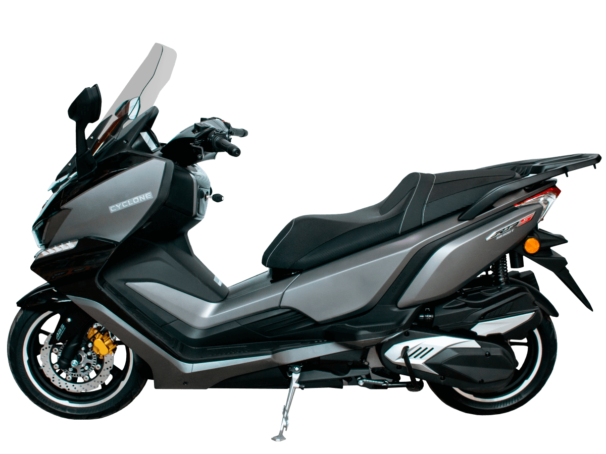CYCLONE RT3S (SR300T) — это универсальный максискутер, который предлагает высокий уровень комфорта, отличную динамику и современные технологии. Он станет отличным выбором для ежедневных поездок по городу, а также для дальних маршрутов, обеспечивая надёжность и удовольствие от вождения.
